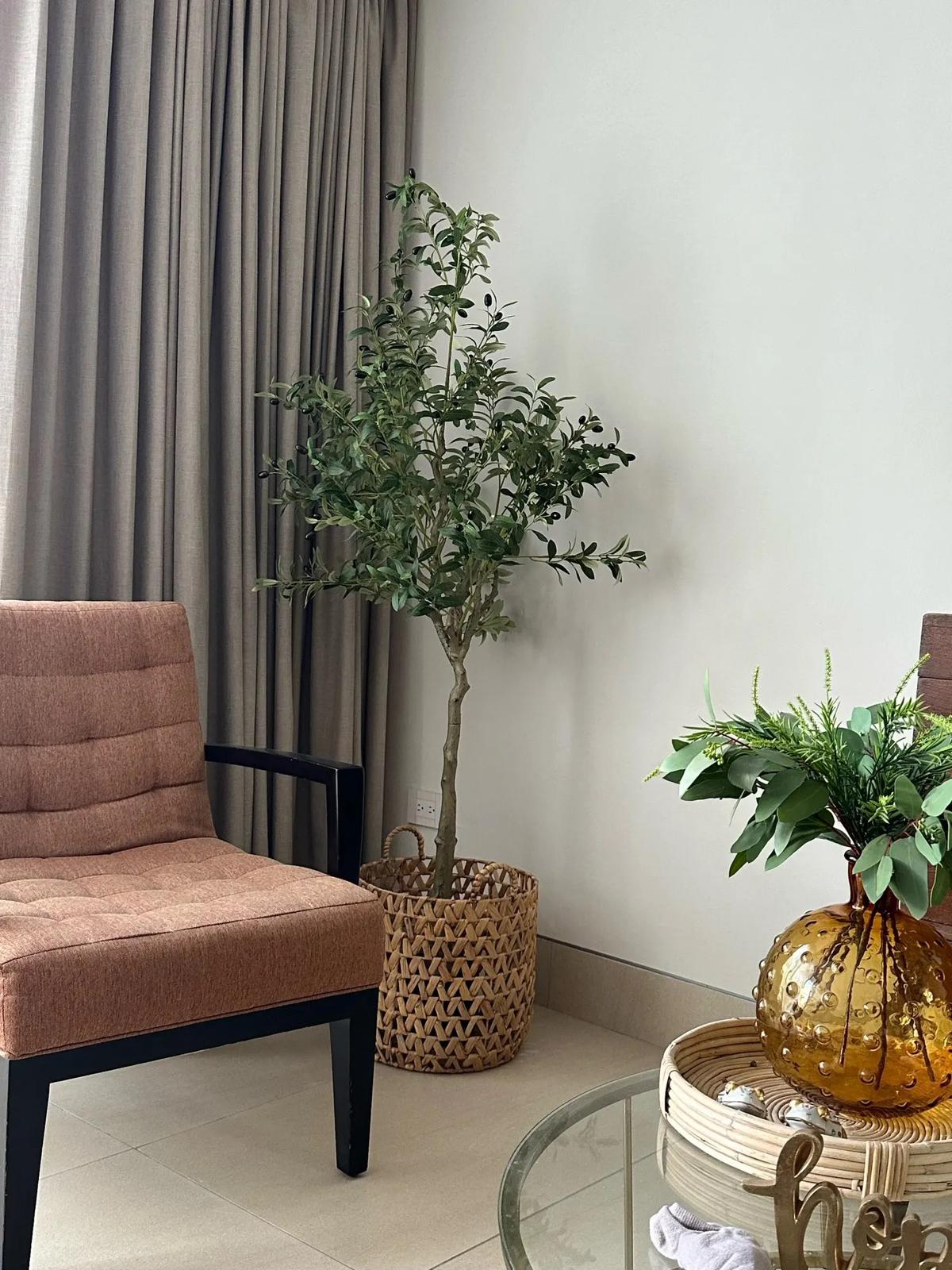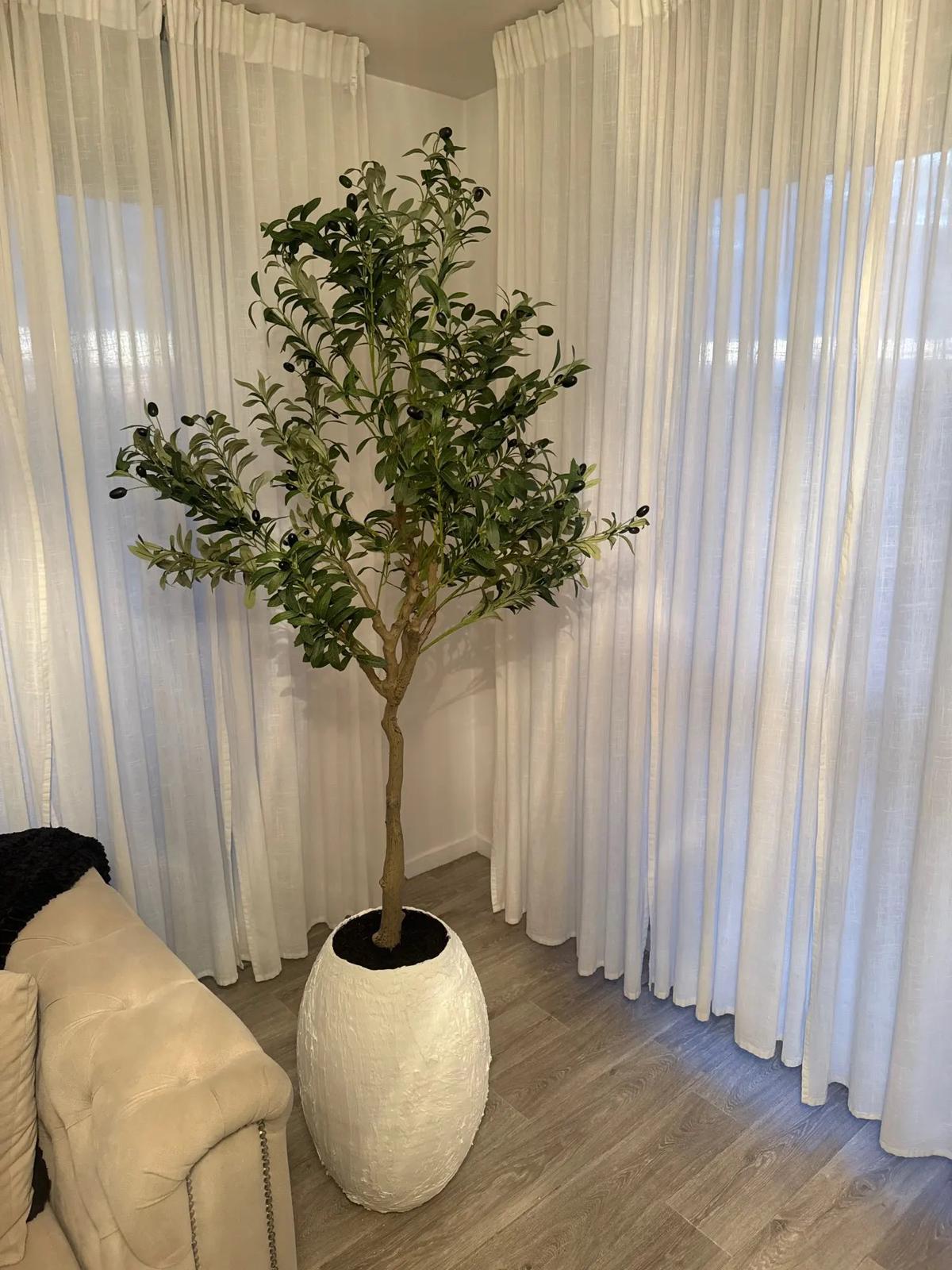 Aggiungi un tocco di natura al tuo salotto con il nostro olivo artificiale. L'eleganza senza tempo di questa pianta conferisce un'atmosfera rilassata e sofisticata al tuo spazio abiotativo.